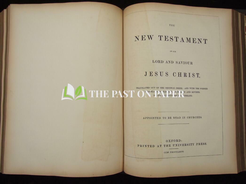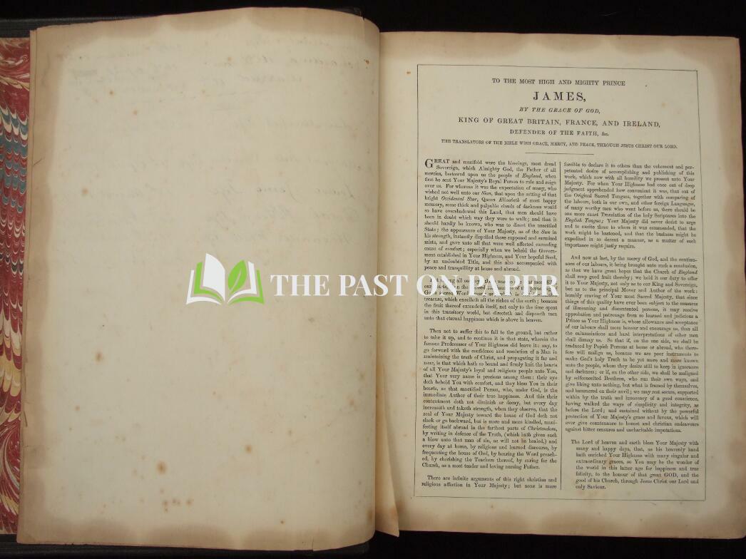 The Bible itself is in good condition, though the front title page appears to have been removed. Unusually, the boards remain attached, and the spine is tight with headbands.