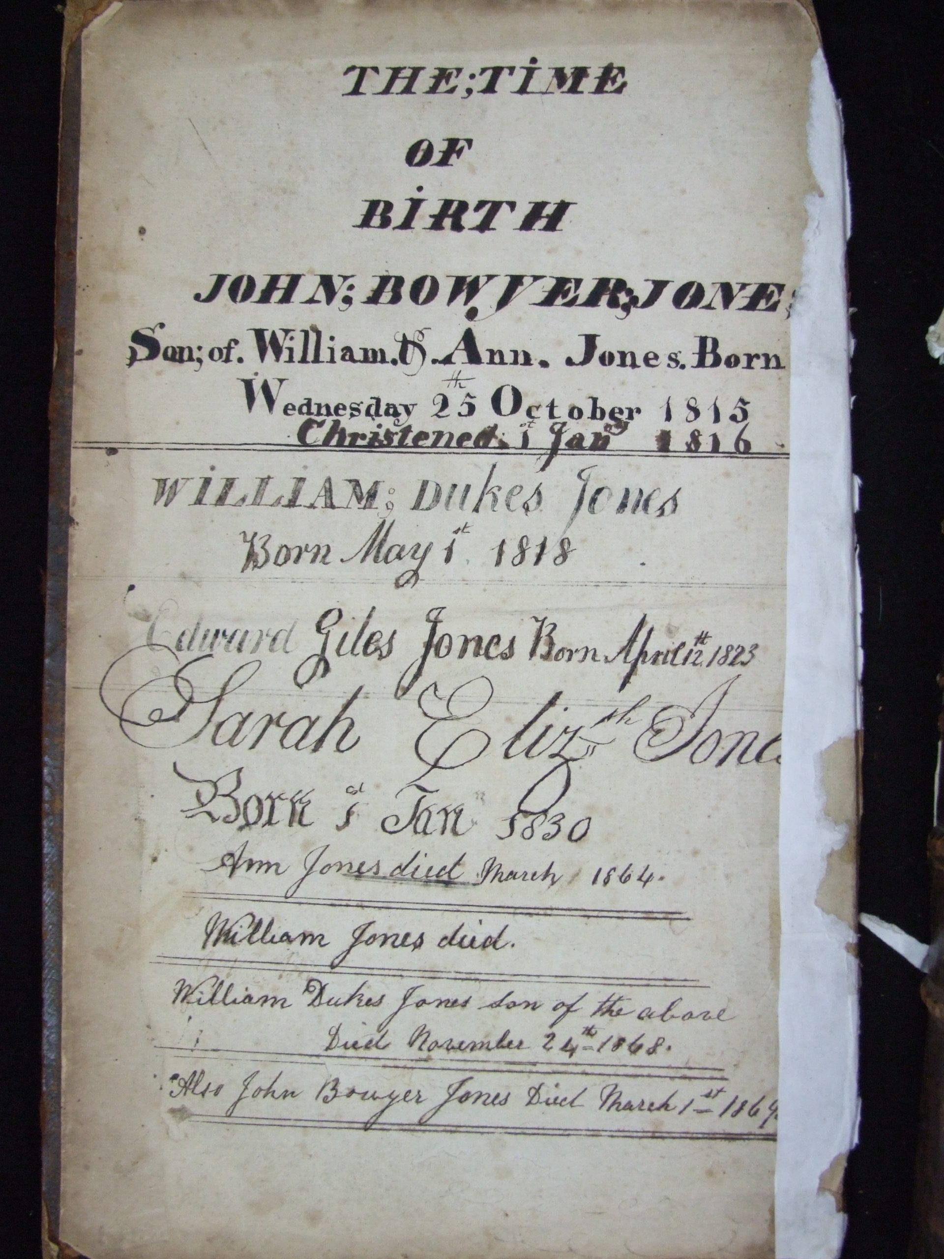 Family Bible of John Bowyer Jones