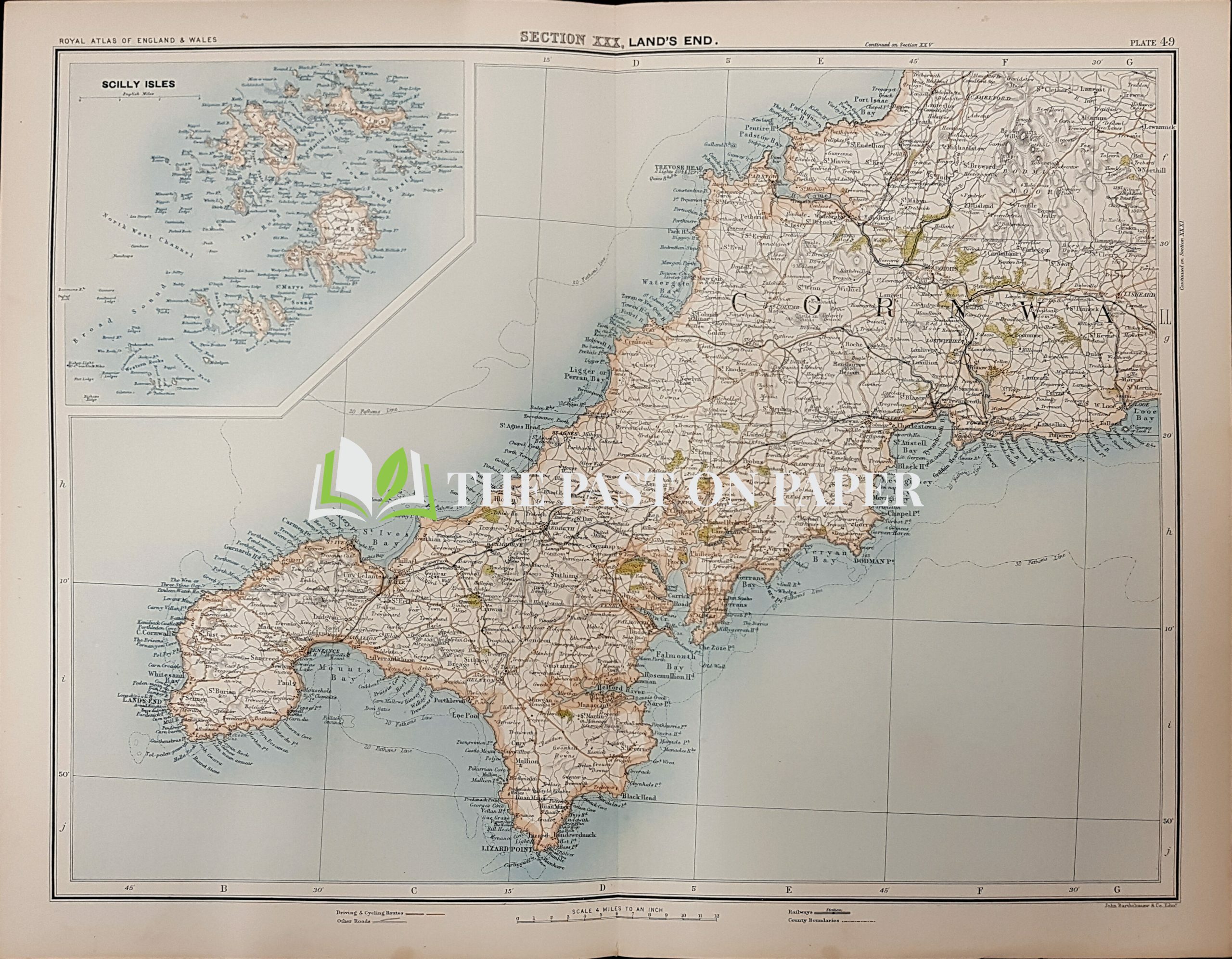 Victorian map of Land’s End, Cornwall,and The Scilly Isles, Published 1891