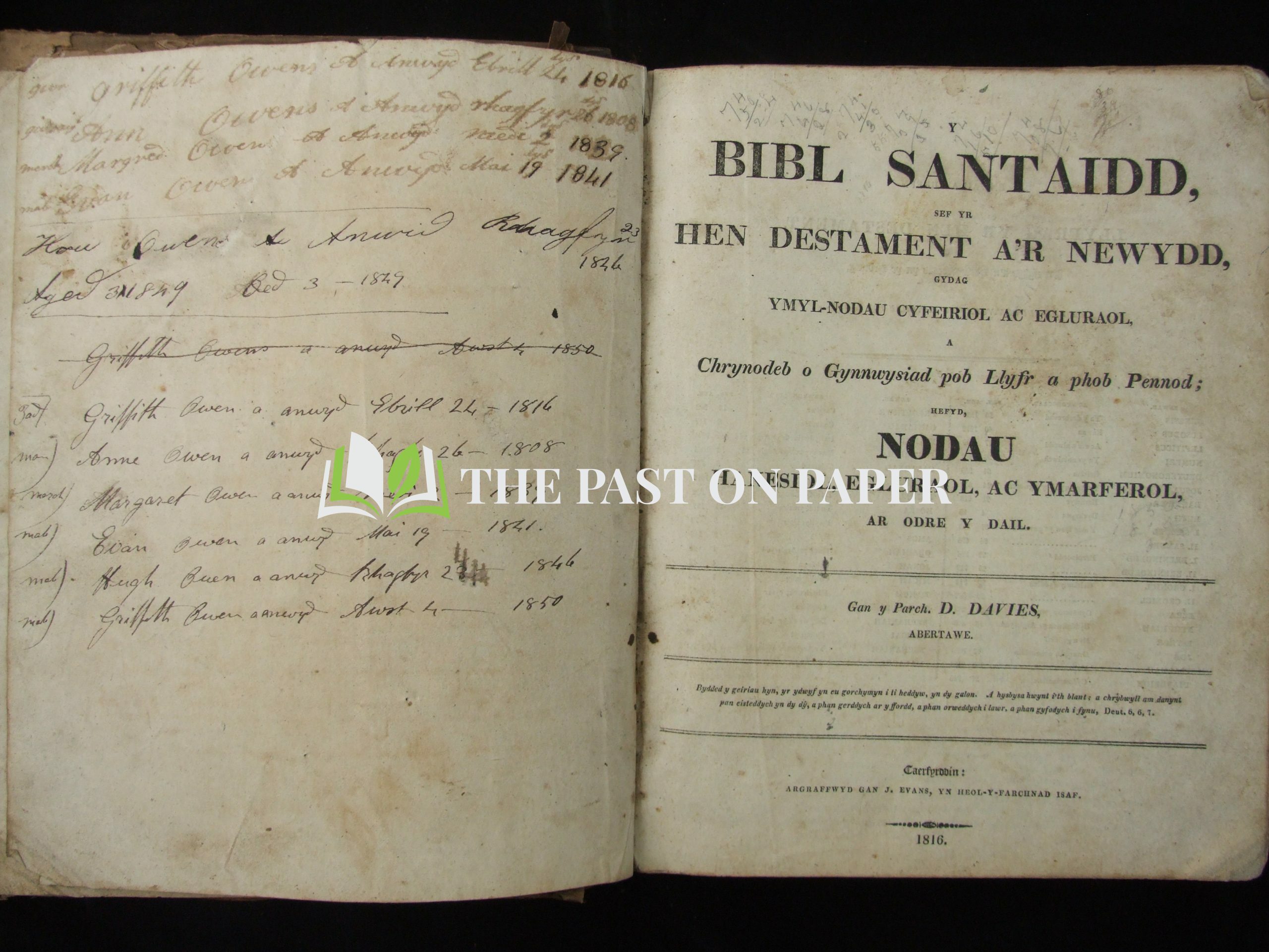 Welsh Family Bible of Evan Pugh and Margaret Richard of Pandy-Bach, Dongelly, 1816